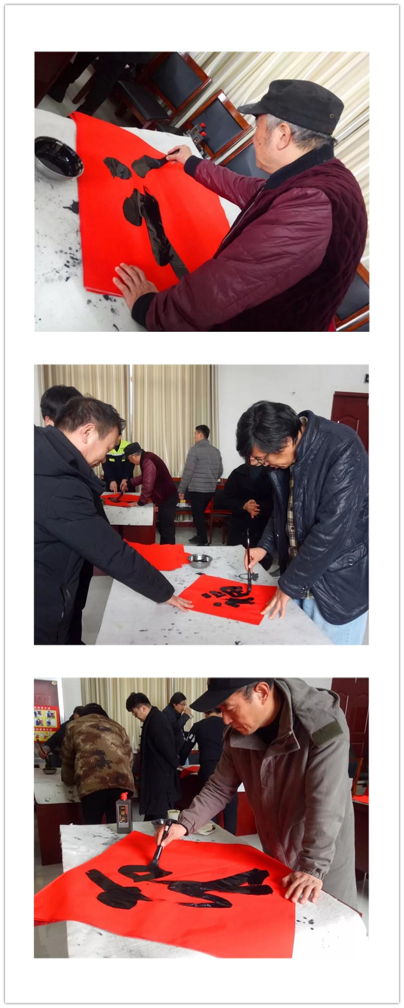 在活動現(xiàn)場,書法家們揮毫潑墨,一筆一畫,勾勒得鏗鏘有力,員工們圍在書法家身邊,挑選自己中意的對聯(lián)內(nèi)容,或請書法家為自己專門書寫提前準(zhǔn)備好的內(nèi)容,經(jīng)過書法家們的妙手,不一會兒,一個個字體多樣、墨寶飄香的“福”字和一幅幅寓意喜慶吉祥的春聯(lián),不斷呈現(xiàn),員工們有的幫忙牽紙加墨,有的將寫好的對聯(lián)進(jìn)行晾曬,整個活動現(xiàn)場一片歡樂祥和,洋溢著喜慶的氣氛。