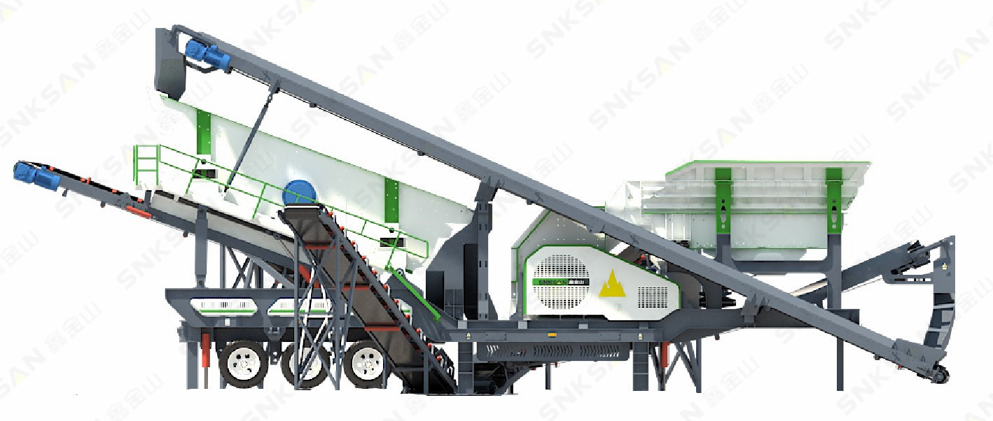 移動站整機配置給料機、錘破、振動篩和皮帶輸送機,集破碎、篩分、給料和物料輸送于一體,高度集成,是一個移動的小型生產線。
